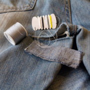 Op Shop Top is all about recycling and reusing. I haunt local charity stores – known as op shops in New Zealand where I’m from – for denim jackets and wonderful clothes, fabrics, lace, trims and buttons that I use to breathe new life into the jackets.
