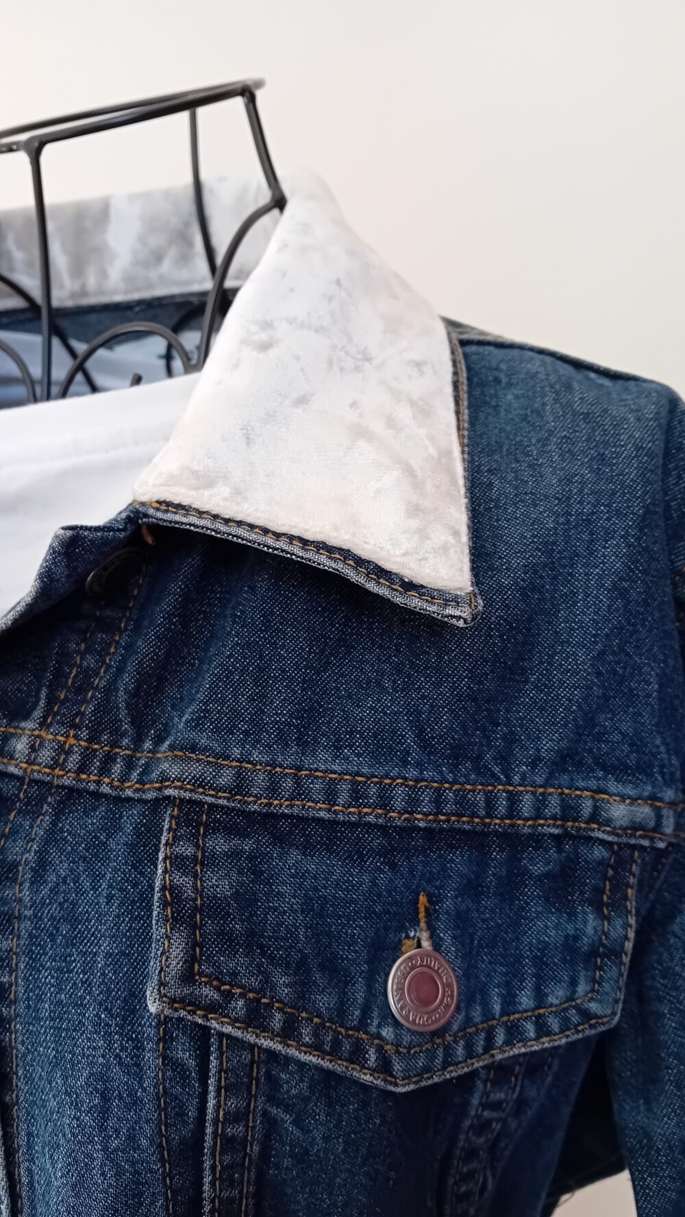 Medium size dark blue denim jacket.
